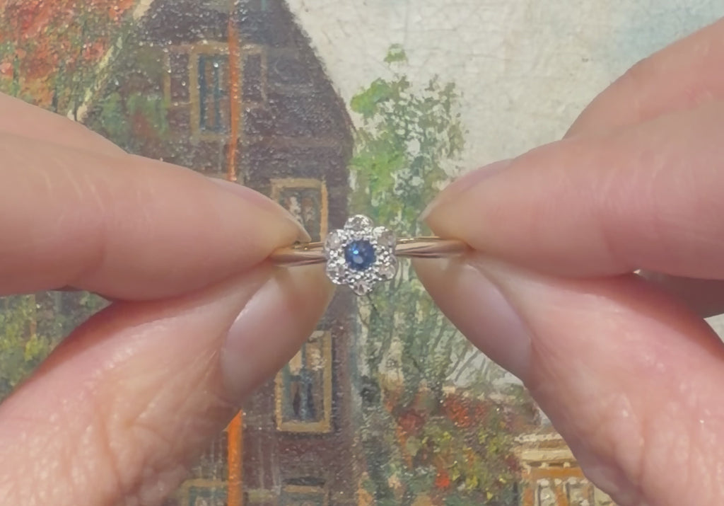 Edwardian rose diamond and sapphire cluster ring