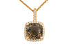 An 18 carat rose gold pendant and chain with a square faceted smoked quartz stone and 31 brilliant cut diamonds.