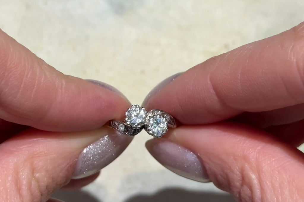 Diamond Toi et Moi ring in 18 carat gold and platinum-engagement rings-The Antique Ring Shop